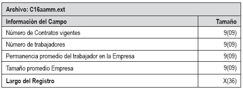 1.16 Número de contratos vigentes según Actividad Económica, Número de trabajadores, permanencia promedio, tamaño promedio de Empresa y Número de Empresas.