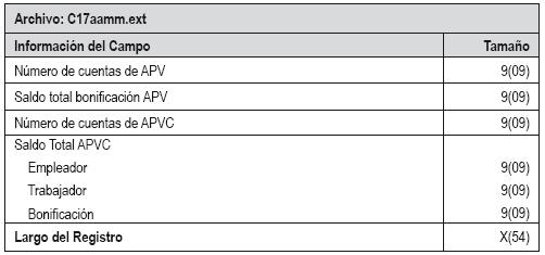 Este registro debe informarse para cada una de las A.F.P. existentes, ordenadas alfabéticamente por nombre y a continuación, un registro por cada uno de los tipos de Entidades definidos en el punto 2.8, en el mismo orden señalado. Al final del archivo se debe incluir un registro para informar los totales.