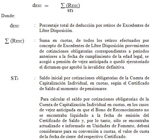 d) En el caso de las personas que se pensionaron antes de cumplir la edad legal, y que además retiraron Excedentes de Libre Disposición, tendrán derecho a la Garantía Estatal para pensión mínima una vez cumplida la edad legal, y su monto estará afecto a dos deducciones, a saber, la deducción por concepto de pensión anticipada (dPA) a que se hizo referencia y la correspondiente al retiro de Excedentes de Libre Disposición (dEXC). Ambas serán sumadas.