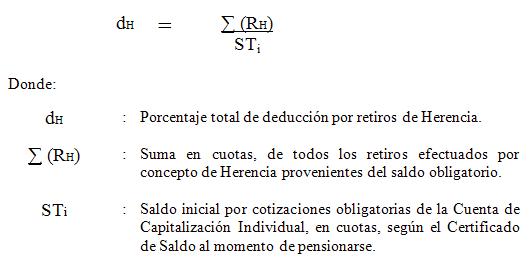 b) El monto de la Garantía Estatal para pensión mínima para los beneficiarios de pensión de sobrevivencia será igual al 100% de la diferencia que faltare para completar la respectiva pensión mínima vigente más las bonificaciones, incrementos u otros que a esa fecha hubiere otorgado el Estado, cuando la pensión contratada con el saldo obligatorio llegare a ser inferior a ese monto. Lo anterior, a menos que los beneficiarios hubiesen efectuado retiros de dicha cuenta por concepto de Herencia, en cuyo caso el monto de la Garantía Estatal para pensión mínima estará afecto a una deducción equivalente al porcentaje que representó el número de cuotas retiradas como Herencia, respecto del total de cuotas existentes en la cuenta, registro de cotizaciones obligatorias, al momento de calcularse la pensión causada por el afiliado fallecido.