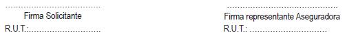 También autorizo a la Aseguradora ....................................... para que requiera los antecedentes que estime necesarios, con el sólo objeto de verificar el cumplimiento de los requisitos para acceder al beneficio de la Garantía Estatal, tanto de las Administradoras de Fondos de Pensiones, de otras Aseguradoras, del Servicio de Impuestos Internos o de otras Instituciones públicas o privadas.