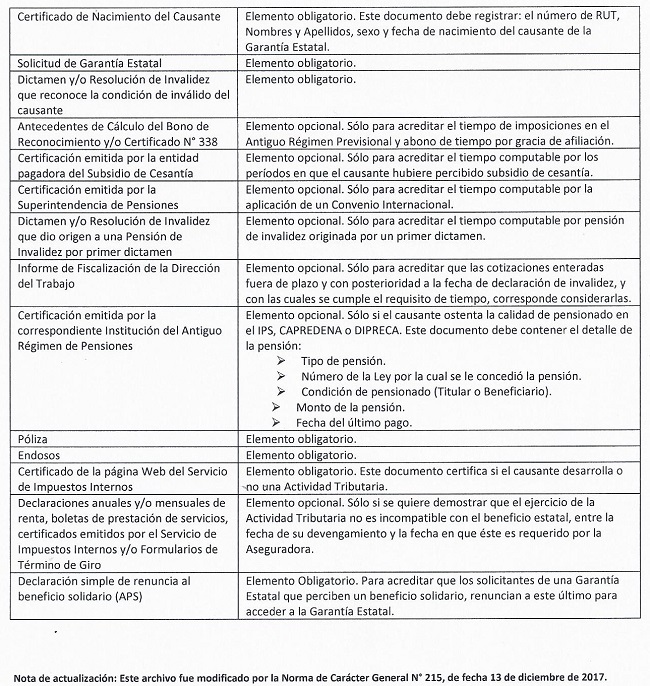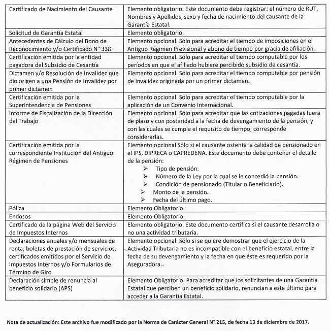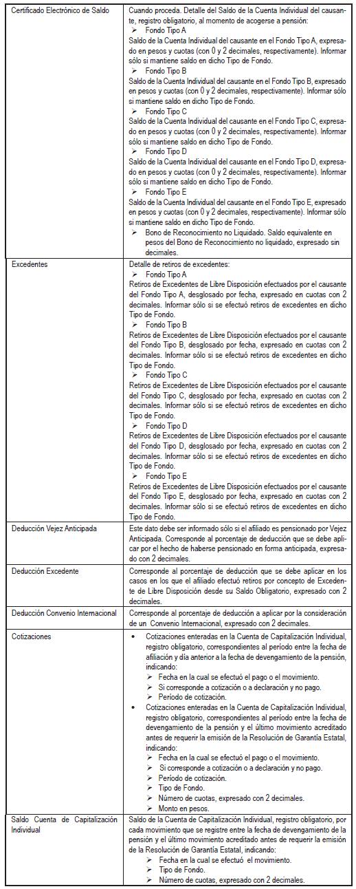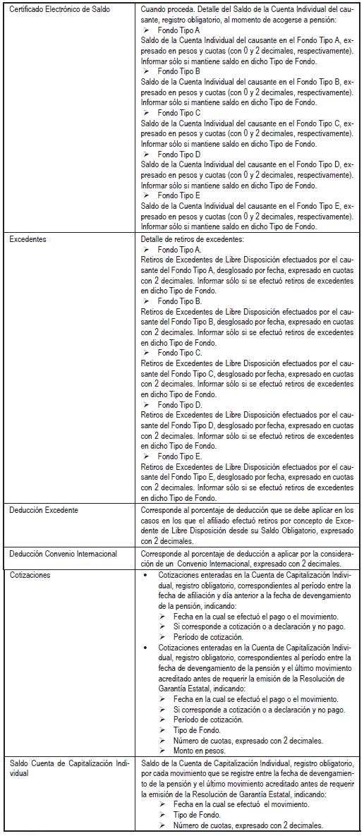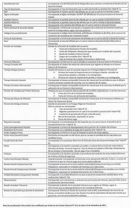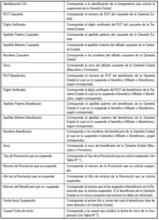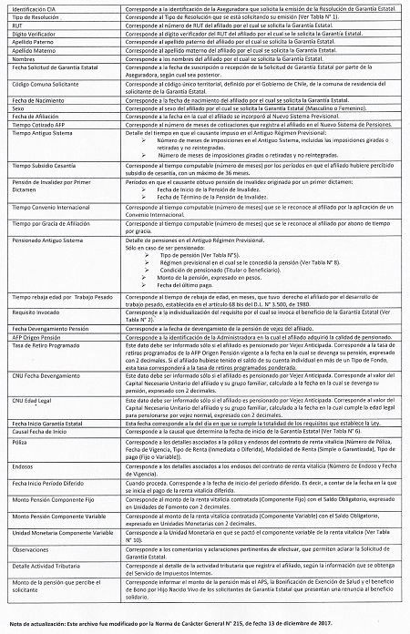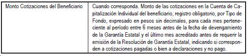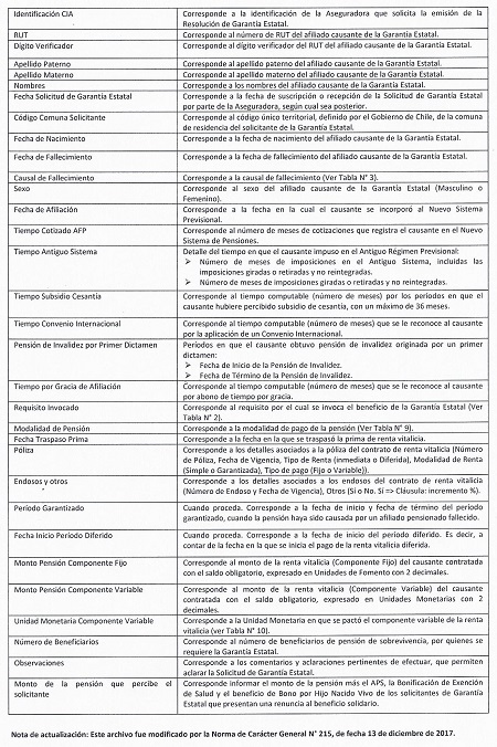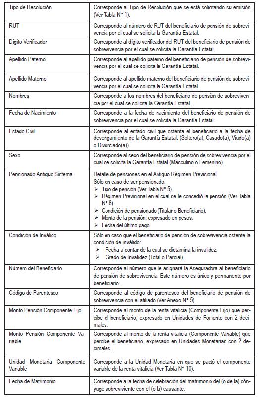 Libro III Beneficios Previsionales > Título VI Garantía Estatal por Pensión Mínima > A. Garantía Estatal para Pensiones bajo la Modalidad de Renta Vitalicia > Anexos > Anexo Nº 3 Descripción de datos relacionados con las Solicitudes de Otorgamiento y Suspensión de la Garantía Estatal