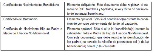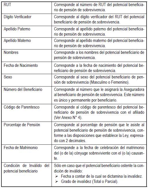 b) Datos para cada Potencial Beneficiario declarado al momento de devengarse la pensión de vejez anticipada
