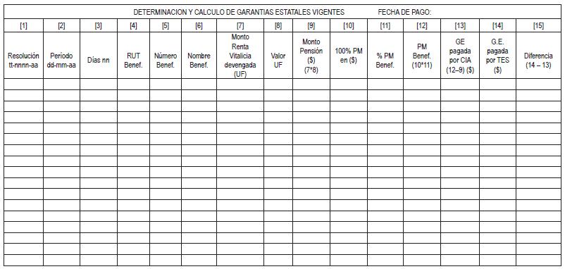Este monto será producto de la comparación efectuada entre la columna [13] y [14], esto es, entre lo pagado por la Tesorería por concepto de Garantía Estatal y lo pagado por la Aseguradora con cargo a dichos recursos. Podrá, a su vez subdividirse en dos subcolumnas, con el objeto de facilitar el cálculo de "montos pagados en exceso" y "montos pagados de menos", por parte de la Tesorería.