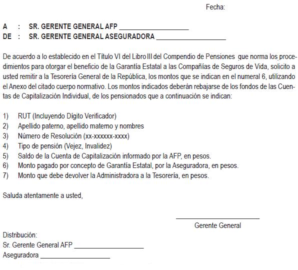Libro III Beneficios Previsionales > Título VI Garantía Estatal por Pensión Mínima > A. Garantía Estatal para Pensiones bajo la Modalidad de Renta Vitalicia > Anexos > Anexo Nº 14 Informe y solicitud de envío de fondos a la Tesorería General de la República, desde la Cuenta de Capitalización Individual