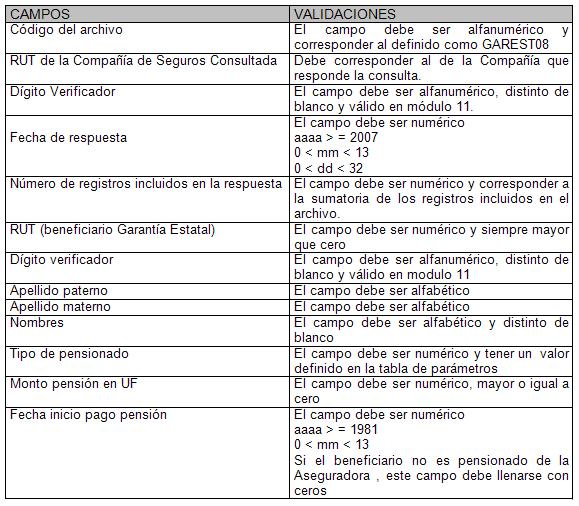 Para efectuar la Consulta de Calidad de Pensionado, se podrán utilizar los siguientes archivos, cuya descripción de registros se detalla a continuación. No obstante, las Administradoras si acuerdan aplicar otras formas y medios con las Aseguradoras, las características técnicas deberán ser informadas a la Superintendencia de Pensiones en forma oportuna.
