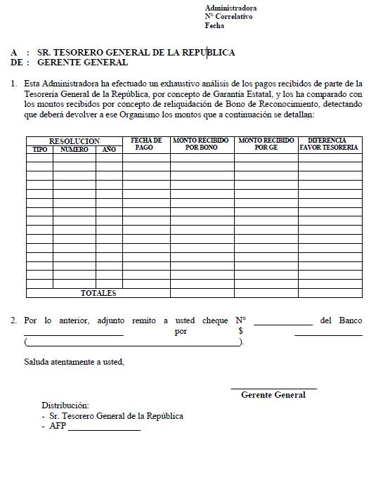 Libro III Beneficios Previsionales > Título VI Garantía Estatal por Pensión Mínima > B. Beneficios Garantizados por el Estado: Garantía estatal para pensiones bajo la modalidad de Retiro Programado, Renta Temporal y cubiertas por el seguro. > Anexos > Anexo Nº 13 Devolución de pagos en exceso por reliquidación de Bono de Reconocimiento
