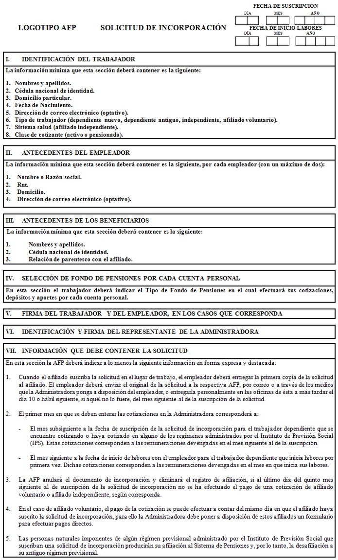 Libro I Afiliación al Sistema de Pensiones del D.L. N° 3.500 de 1980 > Título I Afiliación e Incorporación a una Administradora de Fondos de Pensiones > A. Afiliación e Incorporación a una Administradora > Anexos > Anexo Formulario Solicitud de Incorporación
