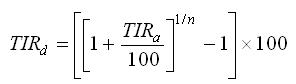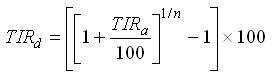 TIRd: Tasa interna de retorno en su equivalente diario. Si la TIR conocida es anual su equivalente diario será:
