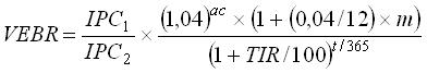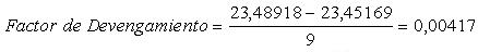 Valor al 28/08/2001: VEBR = 23,45169 + 0,00417 x 6 = 23,47671