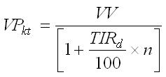 VV: Valor al vencimiento. Corresponde a una unidad de la moneda en que está expresado el instrumento.