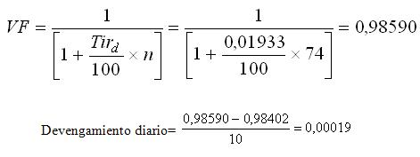 5. El valor devengado de estos instrumentos se determinará de acuerdo a la siguiente fórmula general: