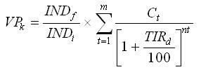 2. Se entenderá por valor económico el valor presente de los flujos futuros netos de caja, descontados a la TIR relevante, multiplicado por la variación del índice de reajustabilidad, lo cual se puede describir en la siguiente fórmula: