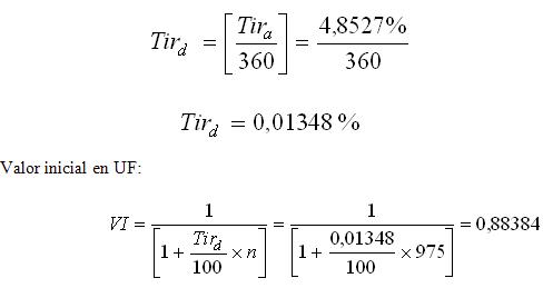 Para el caso de los IIF no reajustables si la TIR conocida es mensual, el equivalente diario será: