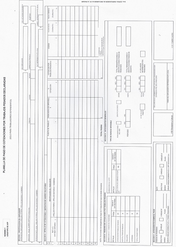 Nota de actualización: El formulario Planilla de Pago de Cotizaciones por Trabajos Pesados Declarados fue reemplazado por la Norma de Carácter General N° 202, de fecha 11 de septiembre de 2017.