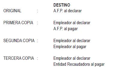 Las planillas deberán ser llenadas en su totalidad por el empleador, a máquina o con letra de imprenta claramente legible, salvo en las partes reservadas para uso exclusivo de la A.F.P.