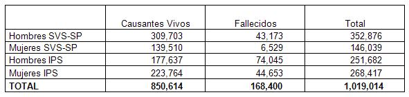 Se utilizó la base de datos proporcionada por el IPS conformada por todos los pensionados vivos y muertos al 31/12/2008. La base esta constituida por 520.099 datos de pensionados hombres y mujeres.