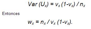 El ponderador wx toma en cuenta la varianza de una distribución normal de la variable aleatoria Ux. Donde Ux es una variable aleatoria binomial pero puede ser aproximada por una variable aleatoria normal siempre que el numero de observaciones nx se lo suficientemente grande.