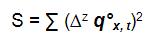 "S" se obtiene de la suma cuadrada de las diferencias finitas. Si por ejemplo z = 4 estamos considerando que la secuencia qx se asemeja a un polinomio de grado 3. Debemos recordar que las diferencias finitas se asemejan a una derivada y por lo tanto el orden de diferencia condiciona el grado del polinomio.