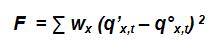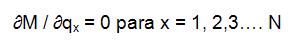Para encontrar los valores de qx ajustados es necesario minimizar M, que es una función con n incógnitas de los valores qx. Entonces los qx que minimizan M corresponden a la solución para las n ecuaciones como resultado de la derivada parcial de M con respecto a qx.