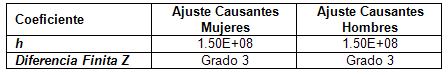 b) Coeficientes utilizados para la construcción de las tablas: