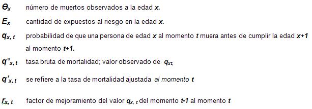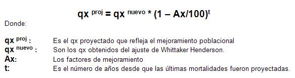 Estas proyecciones fueron implementadas en la tabla RV-09 de acuerdo a la siguiente fórmula: