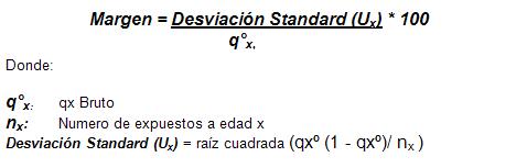 Se mantuvieron los criterios de márgenes de seguridad considerados en las tablas RV-2004. Esto es, no se consideraron márgenes de seguridad en el caso de mujeres y para hombres se incorporaron márgenes de seguridad desarrollados de acuerdo a la siguiente fórmula: