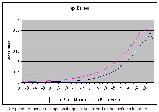 Aquí se ve claramente que el ponderador da mas importancia al qx bruto cuya varianza es menor (el ponderador va ser mas grande).
