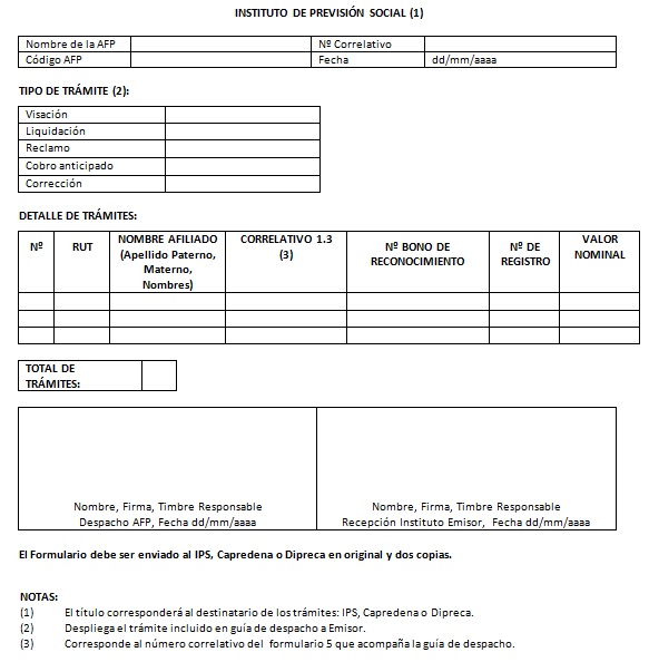 Anexo Nº 5A Formulario Recepción de Trámites de Bono de Reconocimiento
