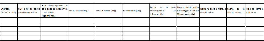 Libro V Aspectos Administrativos y Operacionales de las Administradoras de Fondos de Pensiones y del Instituto de Previsión Social > Título XV Información de las Sociedades del Grupo Empresarial de la Administradora > Anexos > Anexo N° 1 Información Financiera de las Entidades Pertenecientes a la Cadena de Control