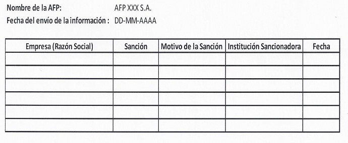 Libro V Aspectos Administrativos y Operacionales de las Administradoras de Fondos de Pensiones y del Instituto de Previsión Social > Título XV Información de las Sociedades del Grupo Empresarial de la Administradora > Anexos > Anexo N° 2 Sanciones Aplicadas a Entidades Pertenecientes a la Cadena de Control