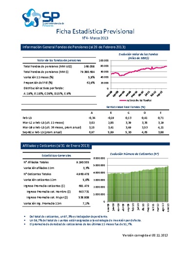 Ficha Estadística Previsional N°4, marzo 2013