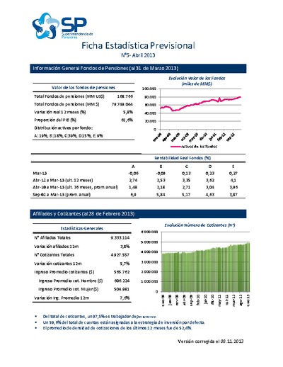 Ficha Estadística Previsional N° 5, abril 2013