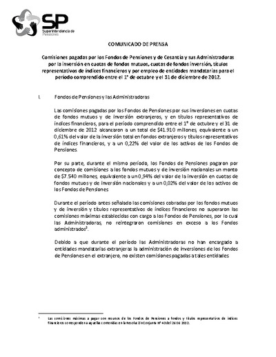 Comisiones pagadas entre el 1° de octubre y el 31 de diciembre de 2012