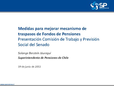 Presentación de la superintendenta de Pensiones, Solange Berstein, ante la Comisión de Trabajo y Previsión Social del Senado, el 19 de junio de 2013.
