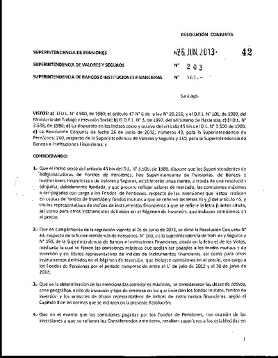 Resolución N°42, 26 de junio de 2013, comisiones máximas, Fondos de Pensiones, fondos mutuos, inversión, nacionales, extranjeros, FICE, títulos representativos, instrumentos financieros extranjeros.