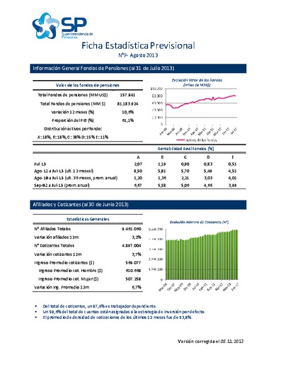 Ficha Estadística Previsional N°9, agosto 2013