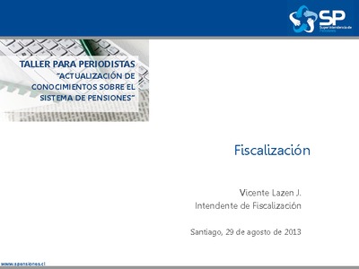 Presentación del intendente de Fiscalización, Vicente Lazen, en el Taller para Periodistas "Actualización de conocimientos sobre el Sistema de Pensiones", realizado en Santiago el 22 y 29 de agosto de 2013.