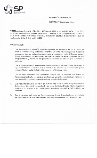 Resolución Exenta N° 23, del 7 de enero de 2014