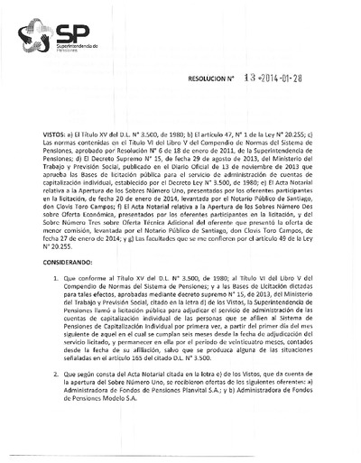 Resolución N° 13, del 28 de enero de 2014