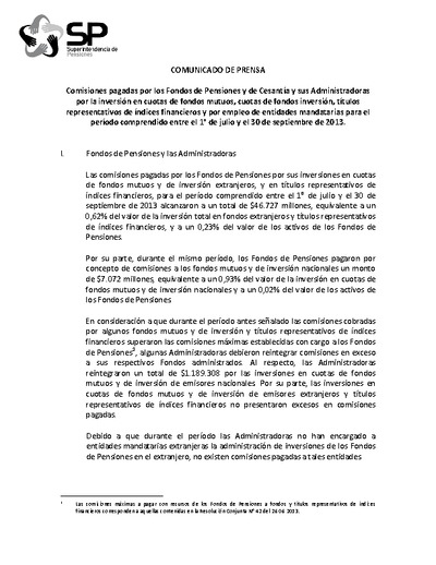 Comisiones pagadas entre el 1° de julio y el 30 de septiembre de 2013