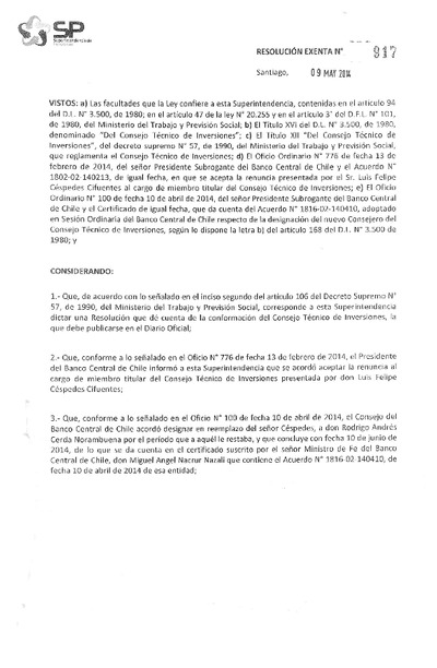 Resolución Exenta N° 917, del 9 de mayo de 2014