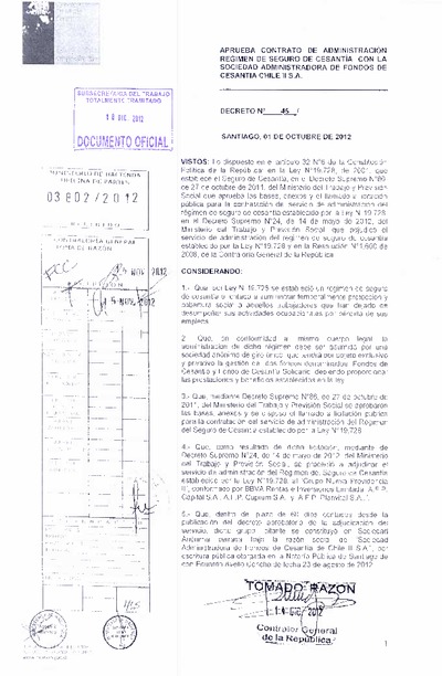 Decreto Nº 45 de 2012