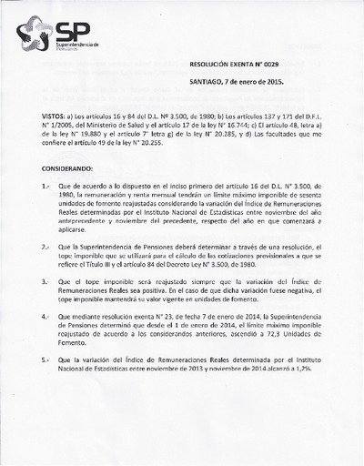 Resolución Exenta N° 29, del 7 de enero de 2015