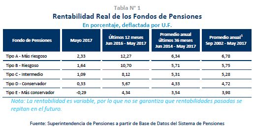 Cuatro de los cinco Fondos de Pensiones anotaron rentabilidades positivas durante mayo de 2017, según el informe que elabora mensualmente la Superintendencia de Pensiones.
