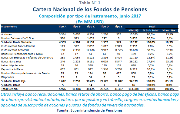 Superintendencia de Pensiones publica informe de inversiones de los Fondos de Pensiones al segundo trimestre de 2017