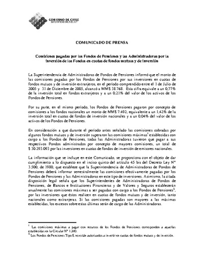 Comisiones pagadas por los Fondos de Pensiones y las Administradoras por la inversión en cuotas de fondos mutuos y de inversión