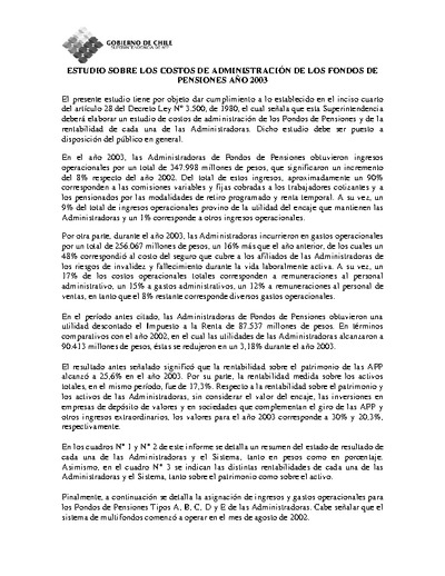 Estudio sobre los Costos de Administración de los Fondos de Pensiones año 2003