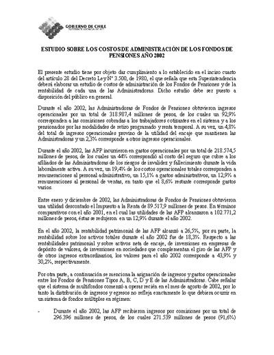 Estudio sobre los Costos de Administración de los Fondos de Pensiones año 2002