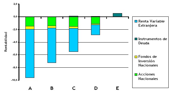 La caída de los mercados externos durante enero pasado fue el principal factor que influyó negativamente en la rentabilidadde los Fondos de Pensiones Tipo A, B, C y D en el primer mes del año.